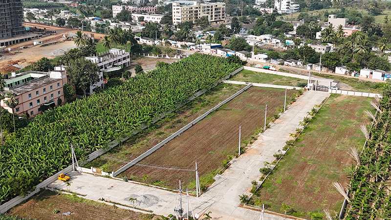 Location :- Situated in Ganguru, within the Krishna District. Size: The project encompasses a spacious 4-acre open venture.